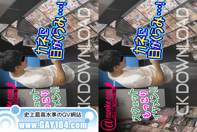 それを見つけたゲイ店員は棚の隙間からチ〇コにタッチ!!