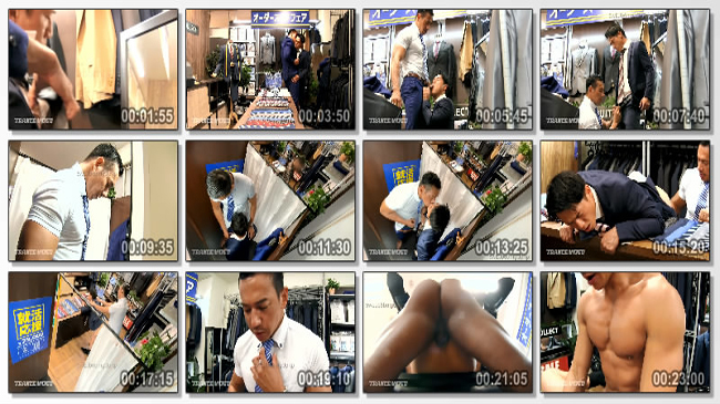 スーツの接客を受けるうちに異様に密着し合う客と店員…!互いに何かを感じながら一線を越えてしまう!がしかしそこへ別の来客が!客の目を盗み試着室で試着している振りをしてカーテン越しのスーツプレイが始まる!